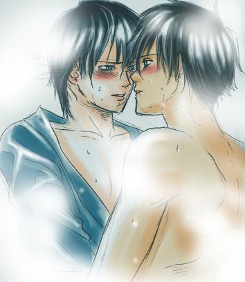 | 水中心音 じゃあそろそろ、と立ち上がりかけた和谷に、 「あ、先生。もう一局! 最後にもう一局だけお願いしますよ!」 目の前の初老の男が手を合わせた。 「…じゃあ、もう一局だけ」 自分の親よりもずっと年上の人に、しかも「先生」とまで呼ばれて無下に断ることもできない。 一度閉じた碁笥の蓋を再び開きながら、和谷はちらりと時計に視線を走らせた。 ──伊角さん、どうしたかな…。 別会場で伊角が受け持っていたセミナーもとうに終わっているはずである。 早めに取った夕食の後は別々の会場での仕事を割り当てられていたため、顔を合わすことすら なかった。 ──まさか飲みに連れ出されちゃったりしてないよな…? 時間が時間なだけに、和谷がいるこの会場内にも酒気を帯びている者の姿は決して少なくなかっ た。和谷が受け持っていた指導碁の時間はもう終わっているので本来なら部屋に引き上げてもい いのだが、参加者たちの熱意に押されてこうしてサービス残業中なのである。今回のイベントの スケジュールから見れば、それは優に2時間は超えていた。 今日の分のイベントは一先ず終了しており、今こうして会場内にいる彼等は温泉につかっての んびりくつろいだ後の寝るまでの一時を過ごしに来ている者達だった。旅館内にある催事場を会 場として使用しているのでそのような自由が許される。その為、和谷以外の全員が浴衣姿、おま けに片手にはビールの缶、という風であった、 わざわざ温泉地に赴いての泊まり掛けのイベントに参加しようというのだから熱心な参加者が 多いのも頷けるし、和谷も同じ囲碁を愛する者としてできる限り彼等の要望に応えてやりたいと も思う。──ただしそれは自分一人の場合だったら、なのである。 ──終わってるんだろうからこっちに来てくれたっていいのに。あーあ、早く伊角さんと温泉 入りたいなぁ。一緒に温泉なんて初めてだもんな…。 思わず弛んできた口元を慌てて引き締めると、和谷は盤上に視線を戻した。 棋院の廊下で今か今かと待ち構えていた和谷は、手合いを終えて出て来た伊角の腕を掴むなり、 ひと気のないところまで引きずって行った。 「おい、和谷。どうしたんだよ?」 びっくりしてパチパチと瞬きを繰り返す伊角の眼前に、一枚の紙きれを突き付ける。 「何?」 満面の笑みを浮かべている和谷に促されて伊角がそれを手に取った。 「えーと…『日本棋院主催、湯ったり囲碁ツアー』? あ、これってこの間話に出てた温泉旅館 に泊まりでやる囲碁セミナーってやつ? もう決まったのか。ええと棋院側の参加者は…あ、俺 と和谷、二人とも入ってるじゃないか」 「えへへ、それだけじゃないんだぜ。ほら、ここ見てよ!」 当日のスケジュールの下に書かれた表を指差すと、伊角が「お」と眉を上げた。 「部屋も一緒なんだな」 「そうなんだよ! しかもここって露天風呂あるんだってさ!」 一緒に露天風呂につかり、一緒の部屋で眠る。 まるで二人で旅行に行くようで、押さえられない笑みが絶え間なく溢れてくる。 一瞬、湯煙を纏った伊角の白い肌が脳裏をかすめて躯に熱が走った。 慌ててその像を頭から追い払いながら、伊角の反応を伺う。 ──伊角さんも喜んでくれるよな? 俺との温泉旅行。 すでに仕事だということを忘れかけている和谷だった。 「へえ、露天風呂なんだ」 伊角の嬉しそうな声に、和谷の顔がパッと輝く。 「楽しみだね、伊角さんっ」 「ああ。ちょうど行きたかったんだよなぁ、温泉。最近、肩こりがひどくってさー」 「……」 「ん? どうした和谷?」 「……そんなジジくせぇこと以外にもっと言うことがあるんじゃねぇか、フツウ…」 思わず目の据わった和谷を、伊角が不思議そうに見つめる。 「何ブツブツ言ってんの、おまえ」 きょとんとしている伊角を見て漏れそうになったため息を何とか飲み込んだ。 ──まあ今に始まったことじゃねぇしな。行ってしまえばいくら伊角さんでもちょっとはムー ドとか感じてくれ……る、よなあ? あ、何か不安。 和谷はプリントに目を落としてスケジュールを確認している伊角の両腕を掴むと、訴えるよう に身を乗り出した。 「なあ伊角さん、温泉楽しみ? 楽しみだよな? な?」 「え? あ、ああ。楽しみだよ」 その気迫に押されて伊角が頷くと、和谷の顔にパッと明るさが戻った。 「やっぱり? そうだよなー。うんうん」 「何だよ、変なヤツだなぁ」 伊角の顔を覗き込むようにしながら、和谷がもう一度えへへ、と笑った。 やっと最後の指導碁が終わり、和谷は逸る気持ちで碁石を片付け始めた。 会場内に残っていた人々も「そろそろ寝るか」と腰を上げ、碁石や椅子を片付ける音でにわか に騒がしくなった。 これで念願の伊角との露天風呂タイムがやってくると思うと、それだけで終日の仕事の疲れな どふっ飛んでいく。 ──伊角さん、やっぱ部屋かな? 碁笥の蓋を閉じ、いそいそと立ち上がろうとした時、 「あ、いたいた。和谷、終わった?」 聞き間違う