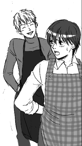 そして、なななんと!Various feber の日下ヒバナ様がイメ−ジ絵を描いて下さいました…!!ちょっとこの二人どうしましょう!?(≧∇≦)vv ヒバナさんのエプロンサエスミ素晴らしすぎ!!!ウギャ〜vvもう私、見た瞬間興奮しすぎて倒れるかと思いました。犯罪です。ハァハァ。ヒバナさん、萌え死に必至のサエスミをありがとうございました〜!!vv